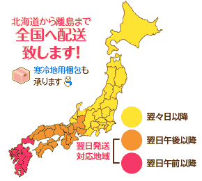 ●上記は熊本から発送した場合の所要日数の目安となります。交通状況等で遅れが生じる場合がございますので予めご了承下さい。